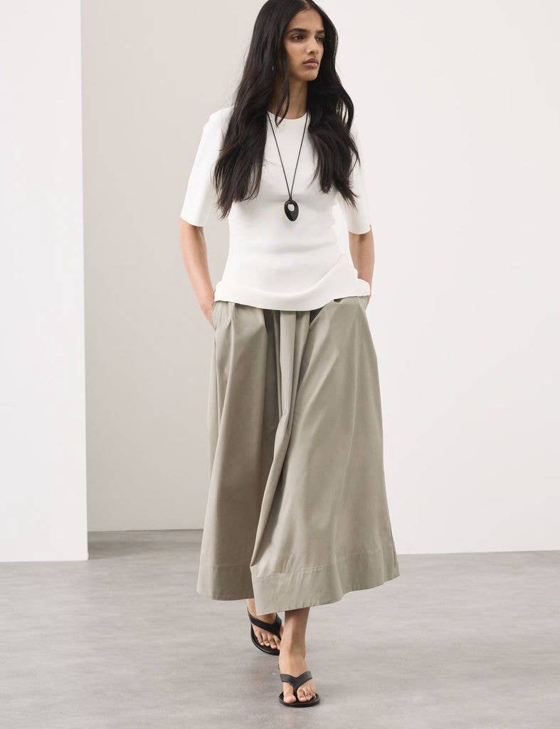 A smarter, more polished take on the maxi skirt is one with pleats – there’s something so chic and cool about one. They’re ideal office wear, a breezy bridge from a wide leg trouser or pencil skirt.